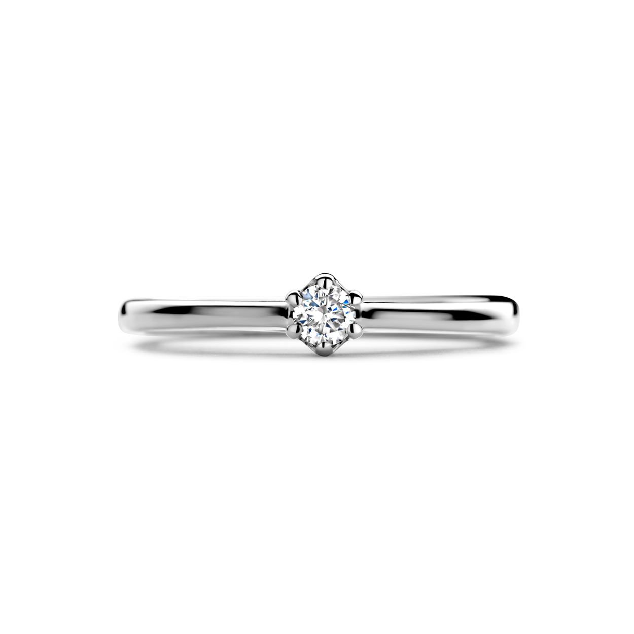 14k Witgouden ring uitgevoerd met diamant. De ring heeft een breedte van 4mm