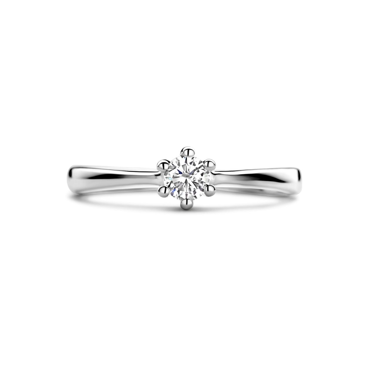 14k Witgouden ring uitgevoerd met diamant. De ring heeft een breedte van 5.2mm.
