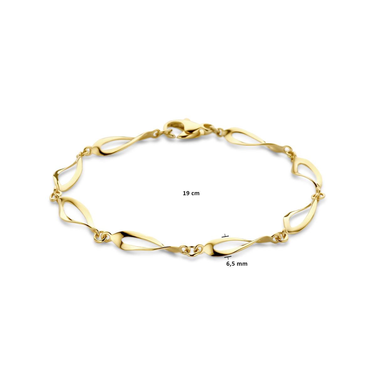 14k Geelgouden armband met een draaglengte van 19cm. De schakelbreedte heeft 6.5mm. Uitgevoerd met karabijnsluiting.