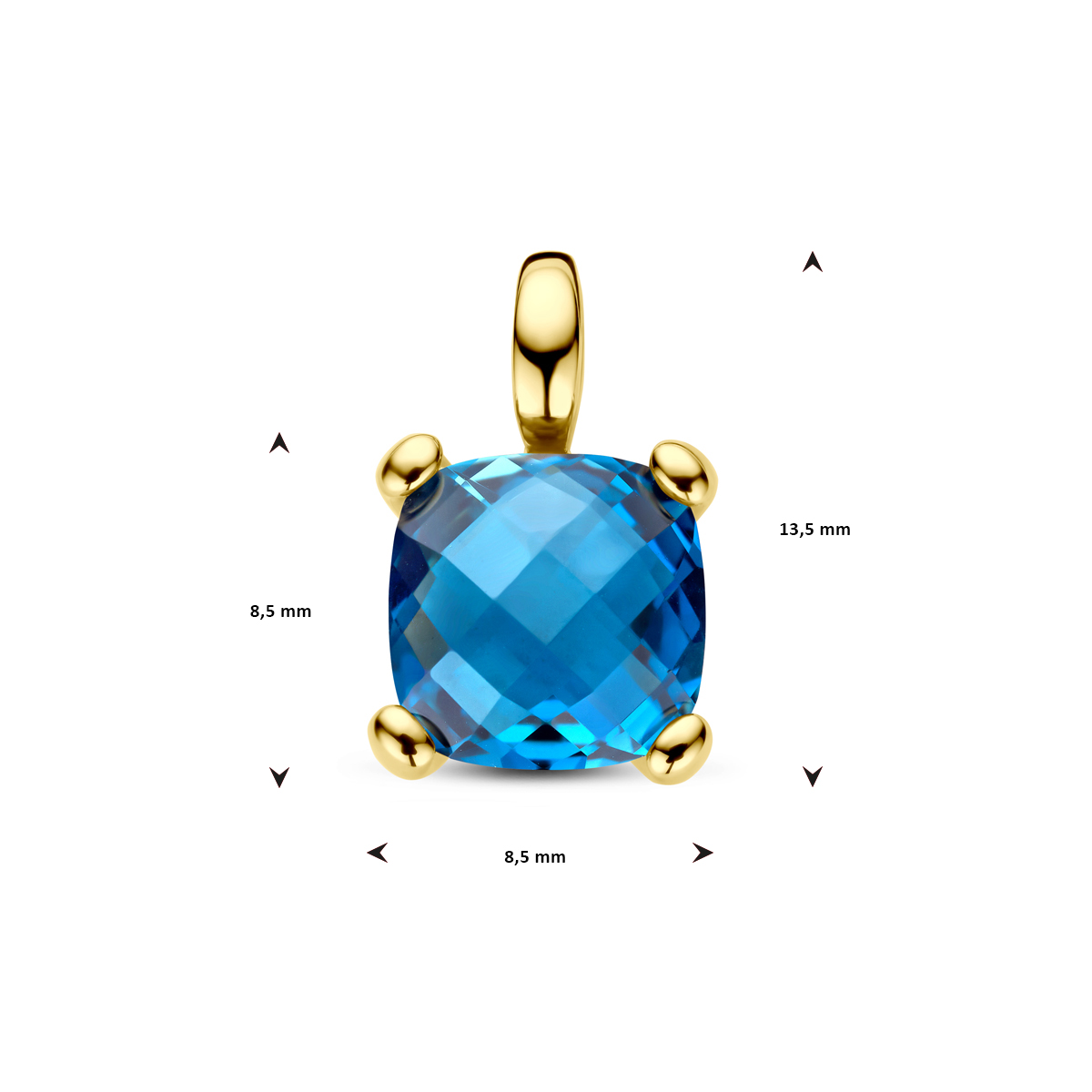 14k Geelgouden hanger uitgevoerd met london blue topaas. De hanger heeft een totale hoogte van 13.5mm.