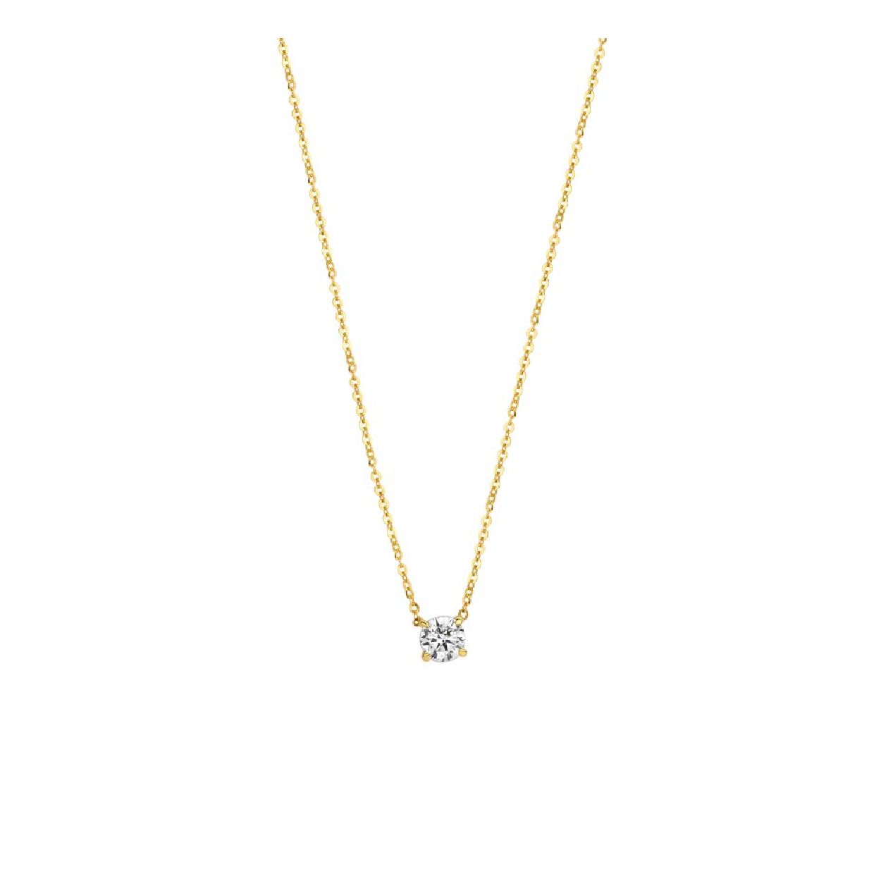 De collier is gemaakt van geelgoud en is goudkleurig. Het is een sieraad voor dames.