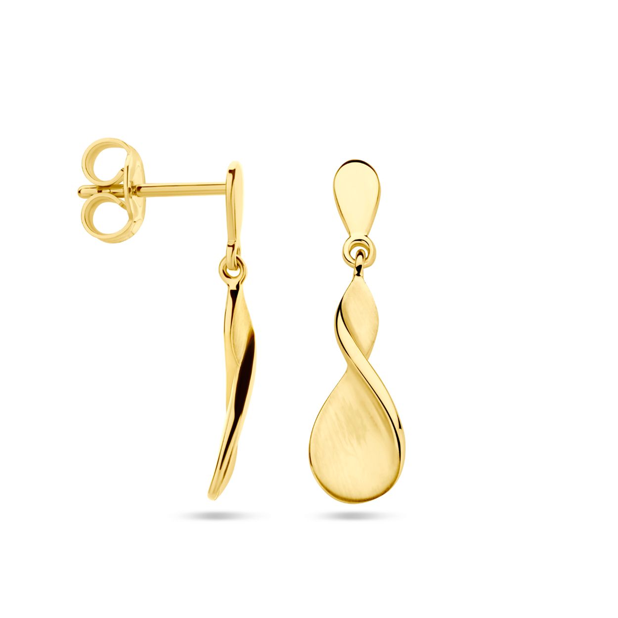 14k Geelgouden oorhangers met een lengte van 16.5mm.