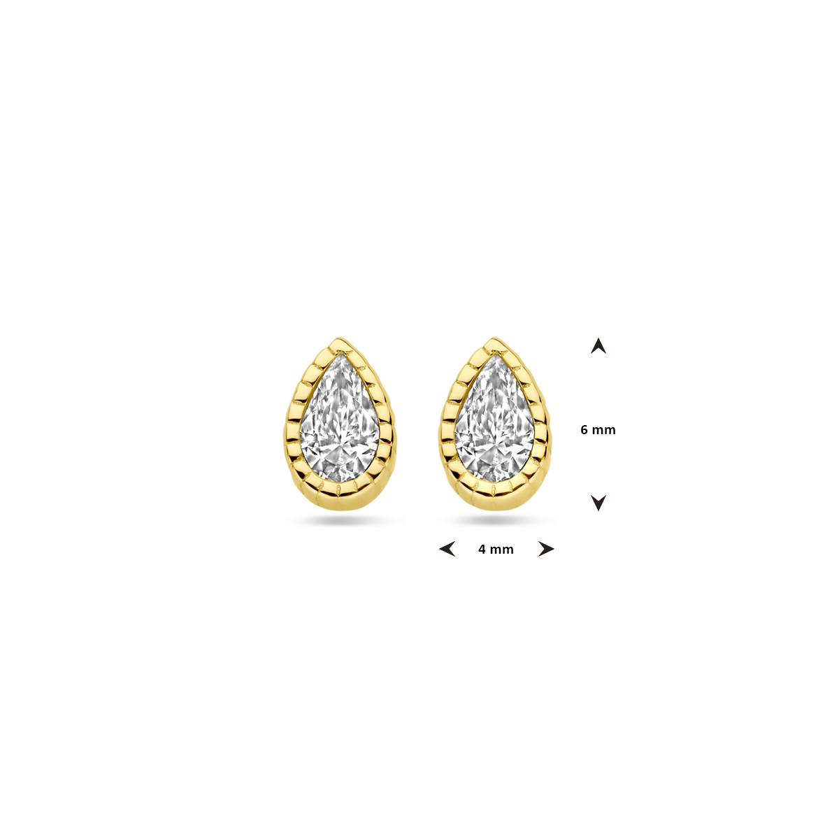14k Geelgouden oorknoppen uitgevoerd met zirkonia. De oorknoppen hebben een afmeting van 6x4mm.