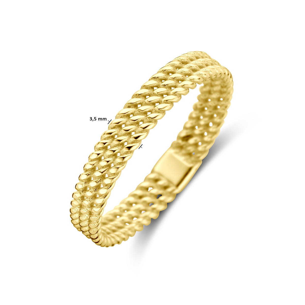 De Ring gevlochten, modelnummer 4032829, is een elegante gouden ring met een breedte van 3,5 mm, perfect voor dagelijks gebruik. Met een gewicht van 1,67 gram, glanst hij prachtig en is ideaal voor elke gelegenheid. Draag deze ring op een casual of chique outfit om je look compleet te maken. Maat: 54.