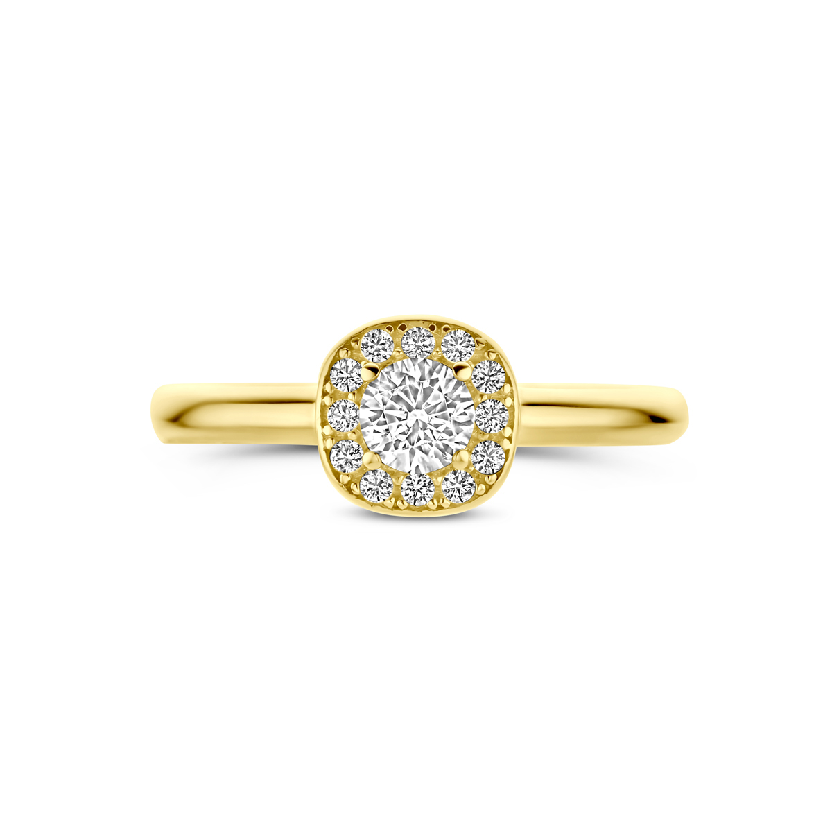 14k Geelgouden ring uitgevoerd met zirkonia. De ring heeft een diameter van 7mm.