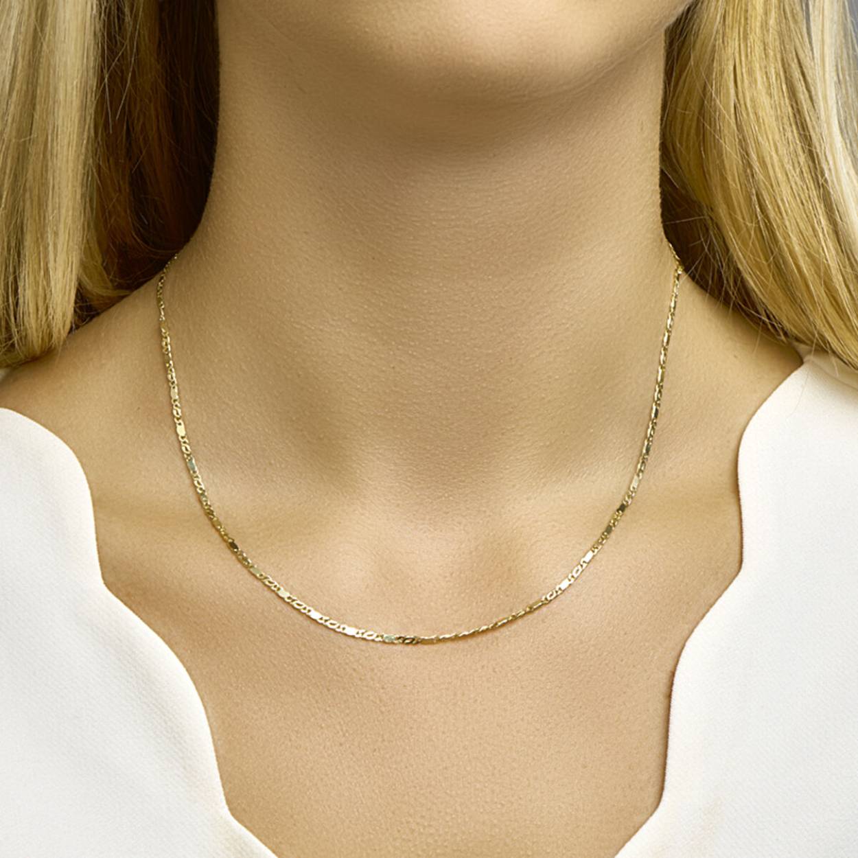 Beschrijving: Geelgouden collier met valkenoog schakel.