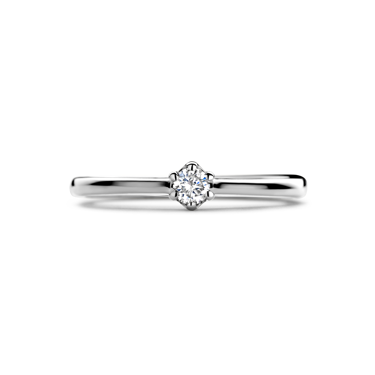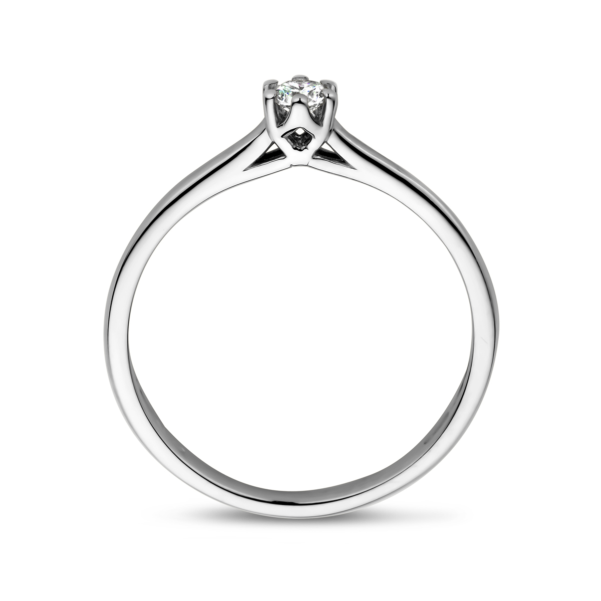 14k Witgouden ring uitgevoerd met diamant. De ring heeft een breedte van 4mm.