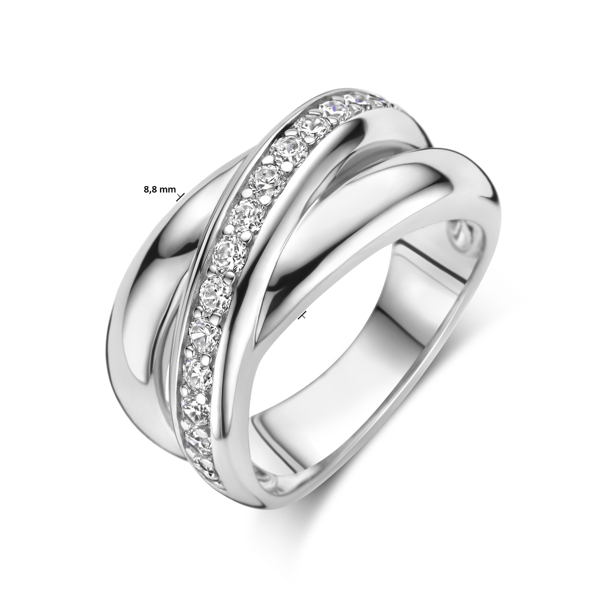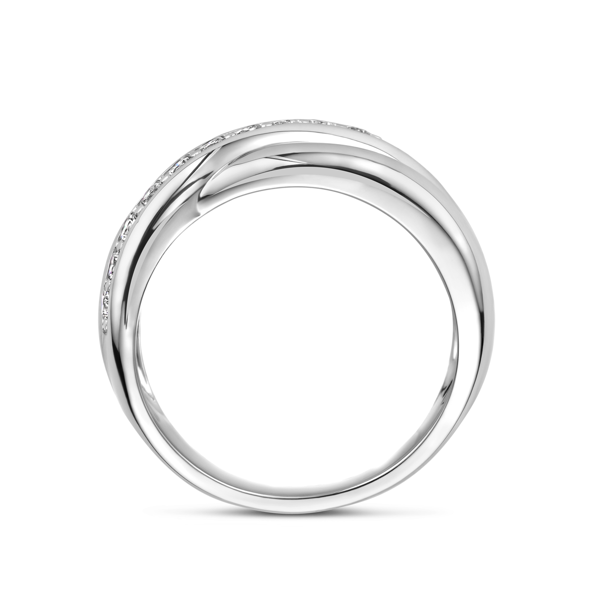 Gerhodineerd 925 zilveren ring uitgevoerd met een schitterende zirkonia rij.
