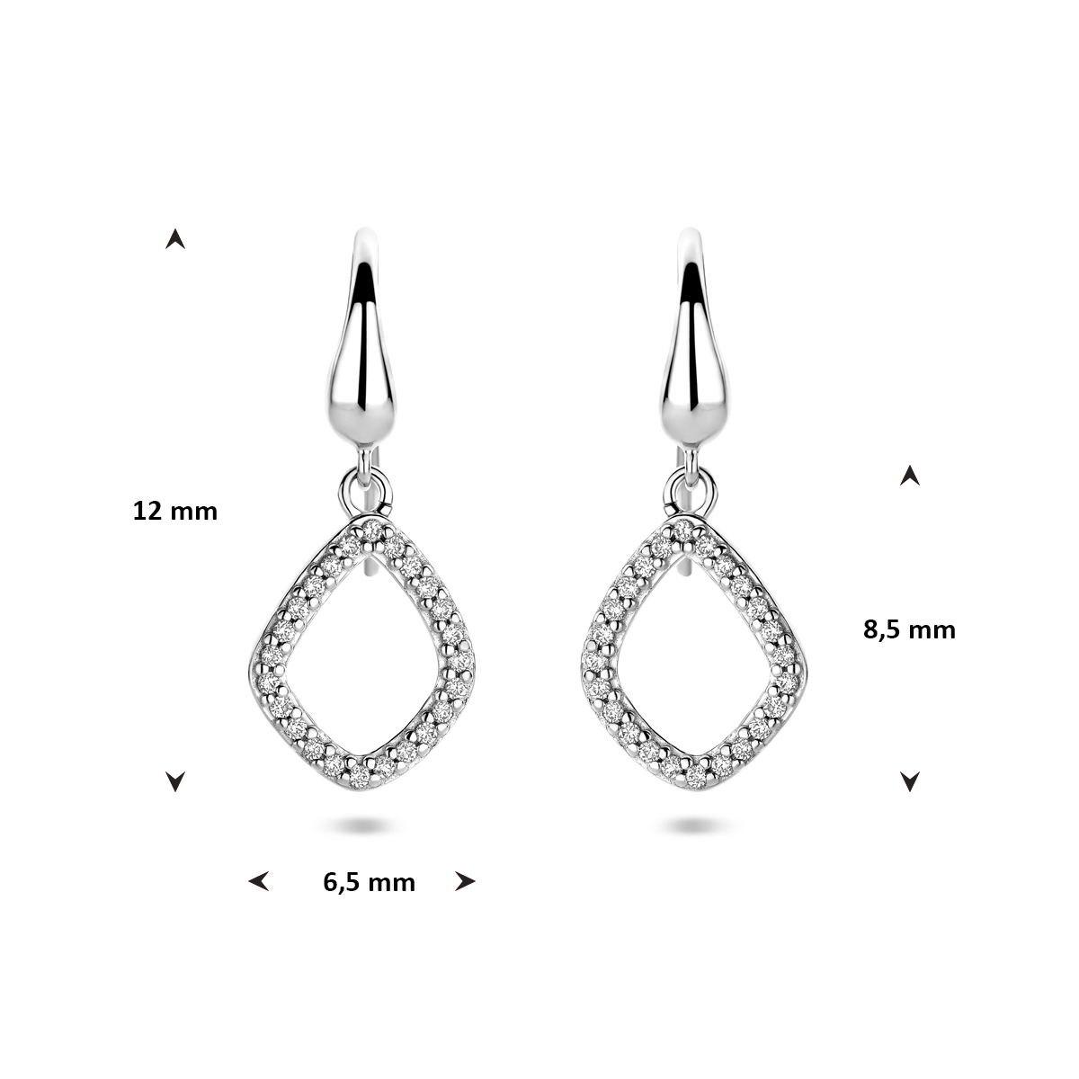 Gerhodineerd 925 zilveren oorhangers in de vorm van een ruit en uitgevoerd met zirkonia. De oorhangers hebben een totale hoogte van 25mm.