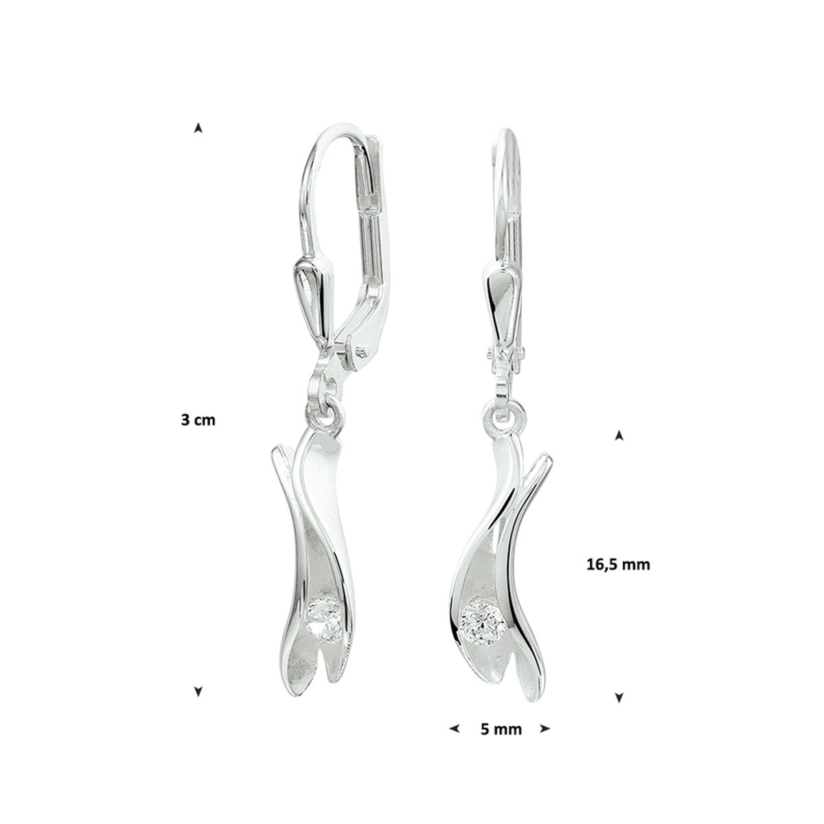 Sierlijke zilveren oorhangers met schitterende details zoals de sprankelende zirkonia steen en de poli/matte afwerking. De oorhangers hebben een totale hoogte van 3cm.