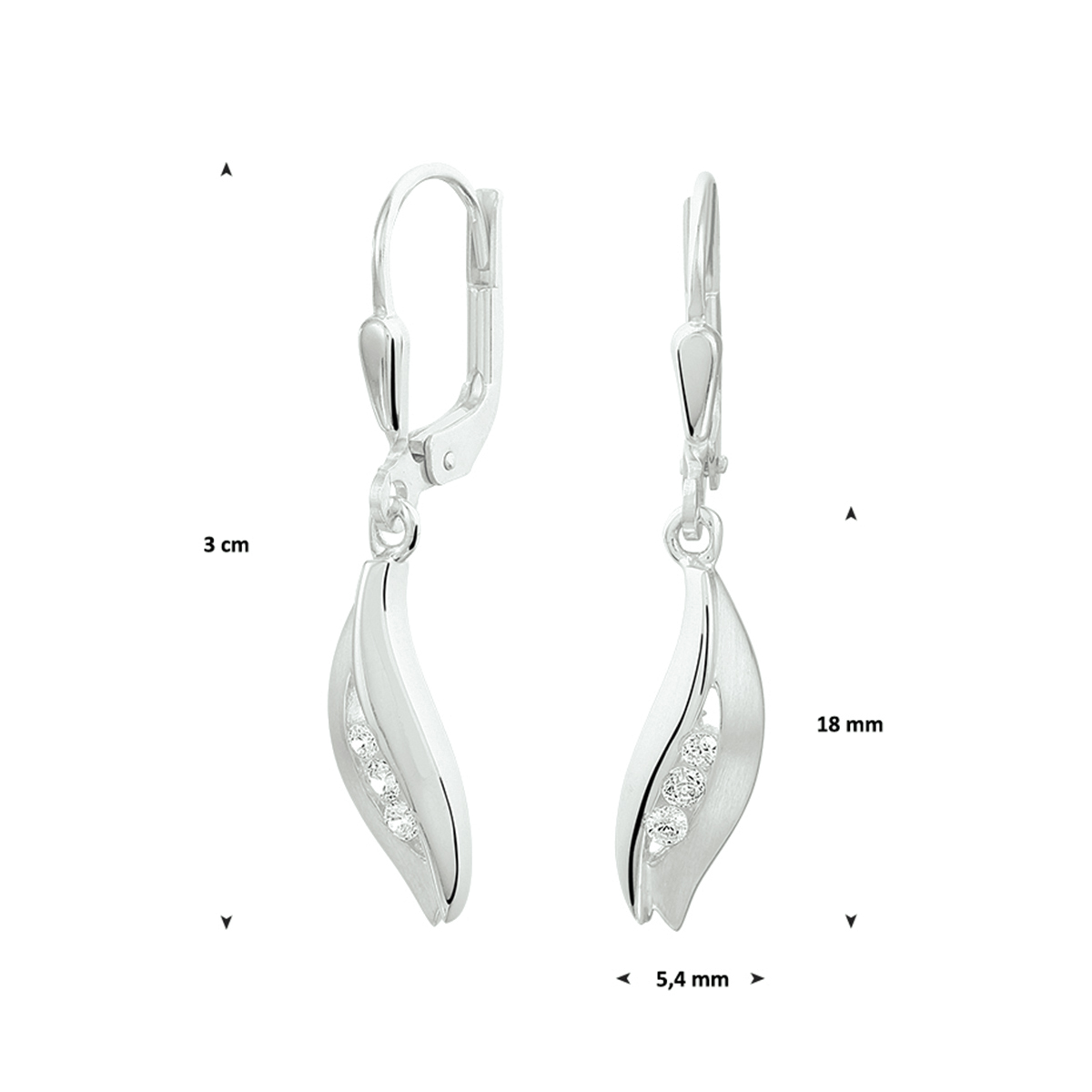 Sierlijke zilveren oorhangers met schitterende details zoals de sprankelende zirkonia rij en de poli/matte afwerking. De oorhangers hebben een totale hoogte van 3cm.